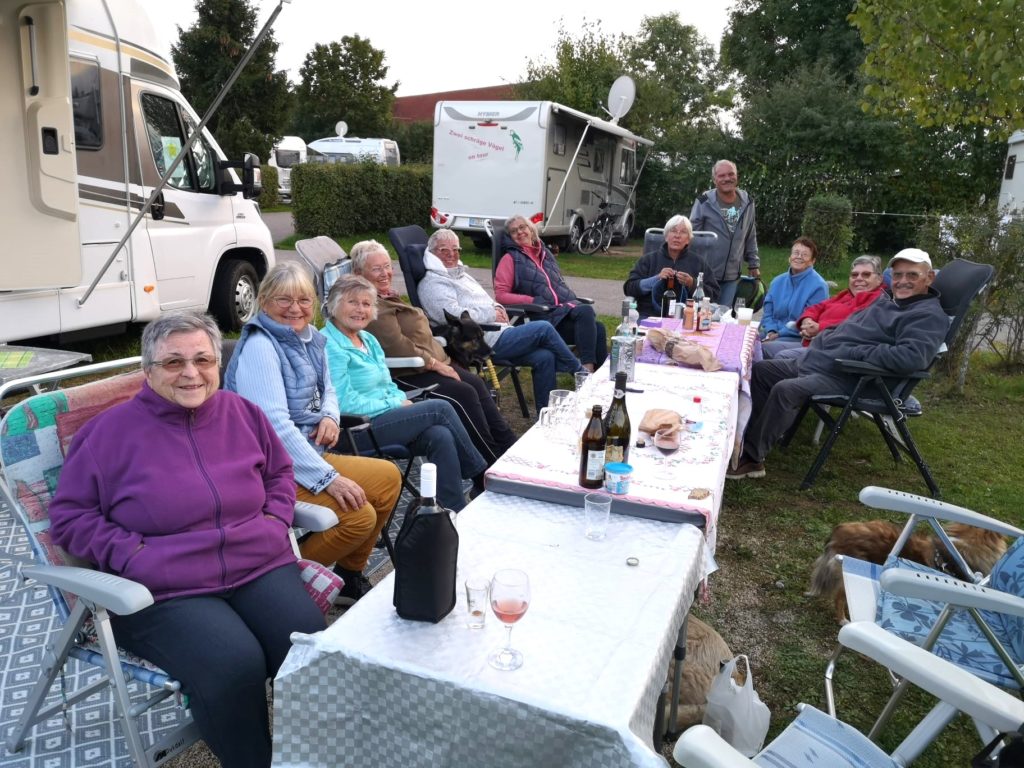 Nach gut zwei Stunden verlasse ich die beiden Damen, ich will Chiara nicht so lange allein lassen. So um 14.00 Uhr trifft sich dann die ganze Sterneschar, 15 an der Zahl zum Kaffee- und Kuchen-Kränzchen, dank Sonnenschein endlich mal im Freien. Es ist eine angeregte Gesprächs-Runde, viele Erlebnisse werden aufgewärmt. So gegen 16.00 löst sich die Gruppe langsam auf, es wird kühl.